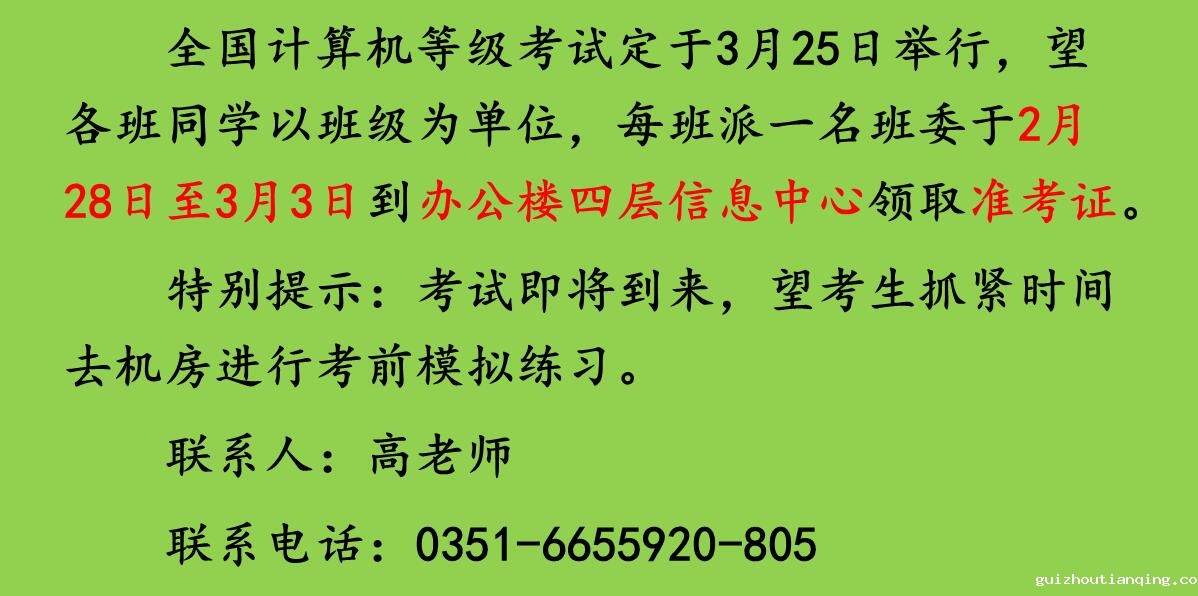 关于领取2017年3月全国计算机等级考试准考证的通知