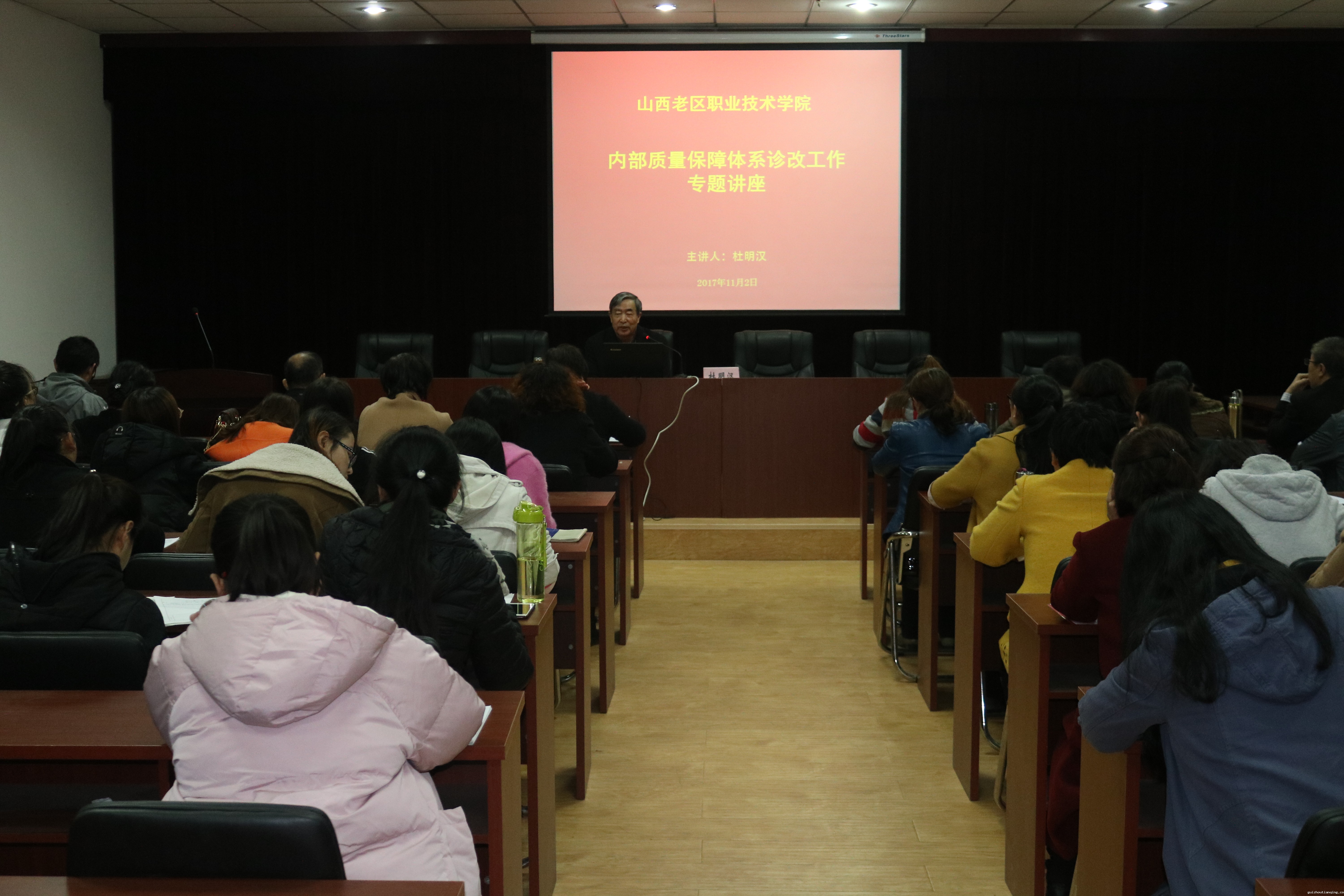 为推动学院教学诊改工作的常态化,提高专业人才培养质量,更好地落实主体责任,11月2日下午3时,在学院办公楼4层会议室召开了内部质量保障体系诊断与改进工作会议。学院特邀山西省教育厅教学诊断与改进专家、山西金融职业学院杜明汉教授做了题为《职业院校教育教学诊断与改进制度建设的思考》的专题讲座。学院党政领导、全体专职教师和护理系部分外聘教师参加了会议。会议由教务处处长方敏主持。