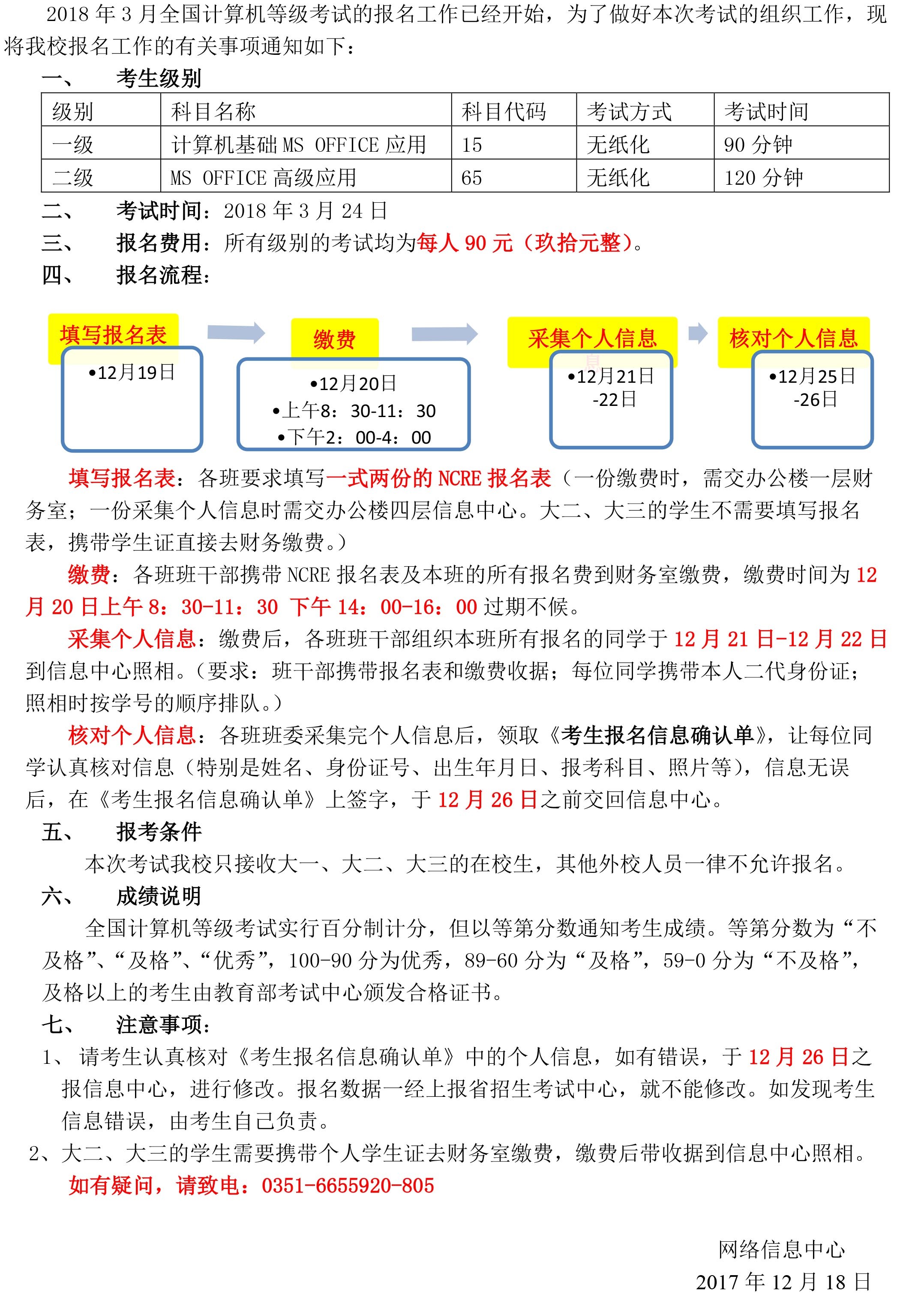 关于2018年3月份全国计算机等级考试报名工作的通知