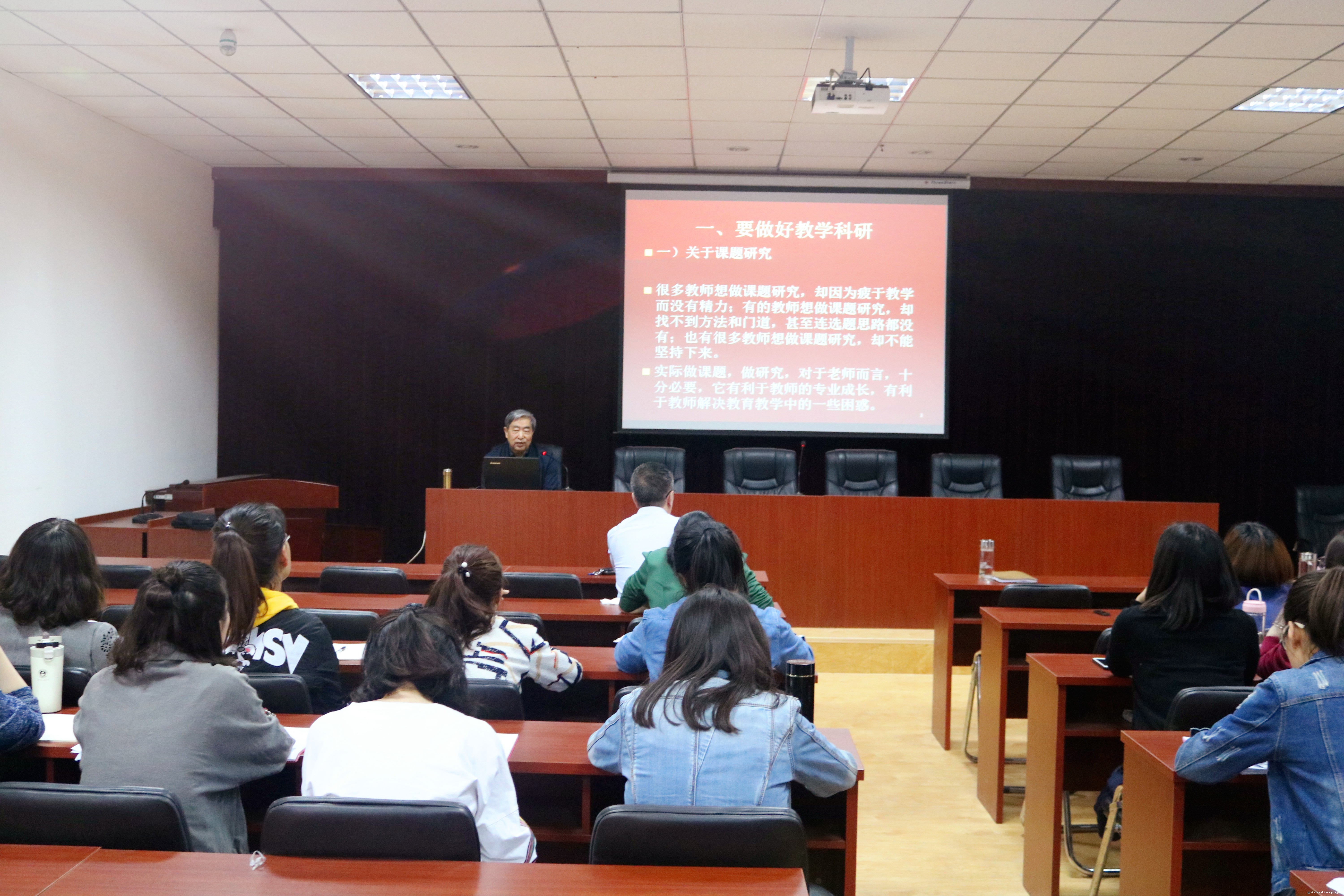 杜教授针对很多教师想做课题研究,却因为疲于教学而没有精力;想做课题研究,却找不到方法和门道,甚至连选题思路都没有;想做课题研究,却不能坚持下来的情况,从教师进行教学科研的原因、教研科研的区别、课题研究的步骤、课题研究的误区等方面为在座教师进行了详细的讲解。杜教授重点强调教师在选题时一定要做到“人无我有,人有我新,人新我特,人特我快”,达到特色与创新的统一。把教学需要做为第一选择,在学科间寻找交点与结合部,围绕热点问题下功夫、做文章。