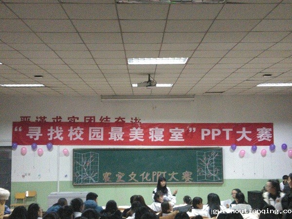 为了营造良好的寝室文化氛围,增强寝室凝聚力,发挥各寝室的特色,也为了丰富我院同学课余文化生活,增强我院同学们之间的相互团结,增进宿舍成员之间的友情,激发同学内心深藏的热情,展现同学们心中渴望的个性。我院院团委·学生会本着从学生中来,到学生中去开展了这次学习和生活相关的主题活动—寻找最美寝室PPT大赛。