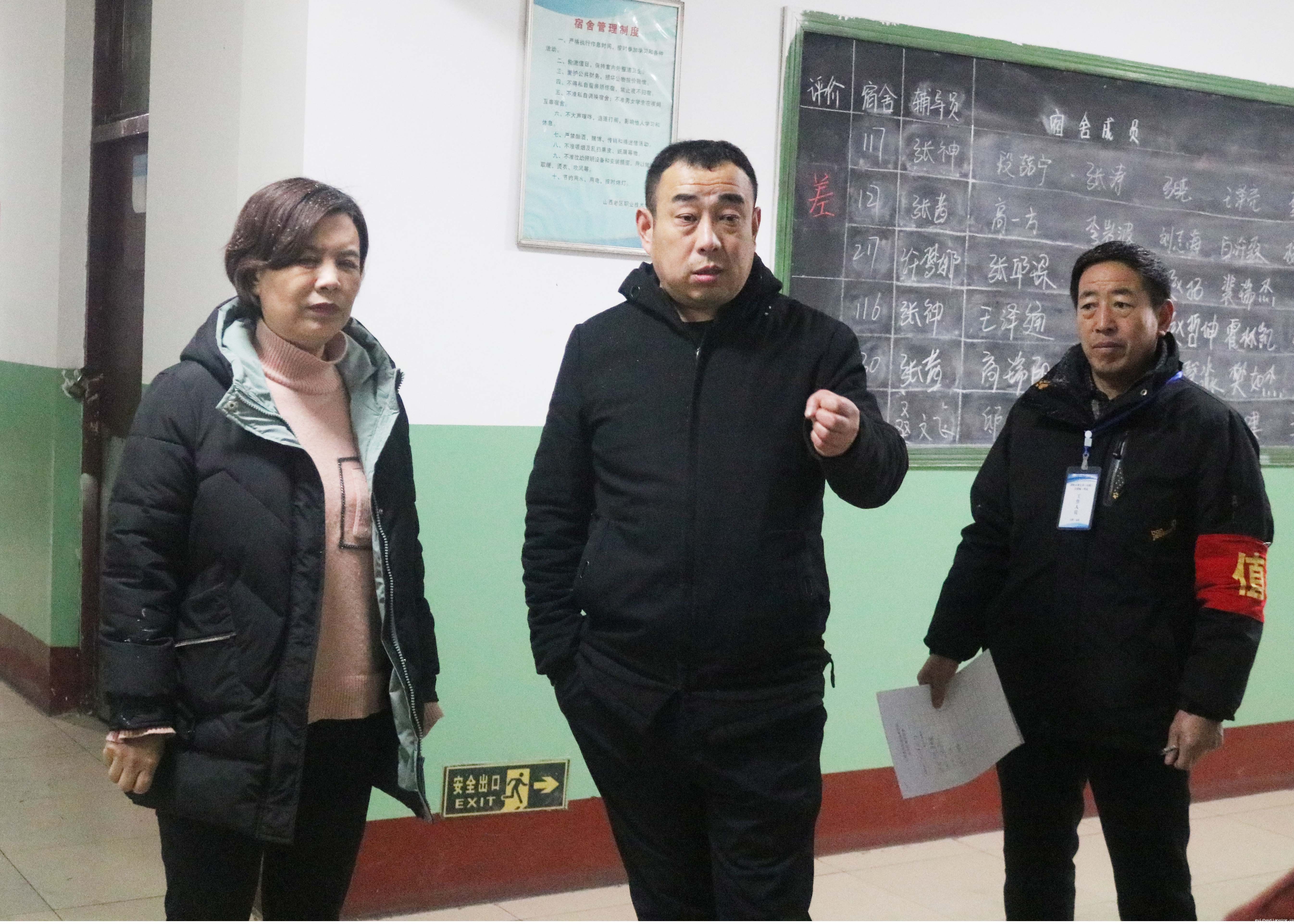 1月5日上午,纷纷扬扬的雪花从天而降,不一会儿,就将整个校园装扮得银装素裹,煞是好看。在这个喜降瑞雪的时刻,为了做好寒假、春节期间校园安全工作,切实维护好全院师生员工的人身和财产安全,陈红梅副院长、侯晋生副院长带领院办、保卫处、后勤处、学生处、实验实训中心、网络信息中心等职能部门负责人对校园安全情况进行检查。