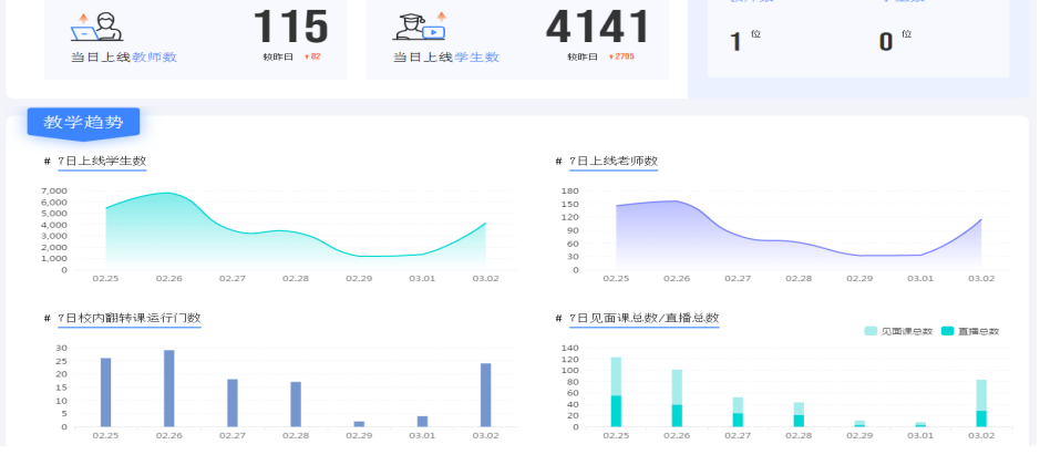 3、师生在线教学(学习)情况及教学效果。为保证第二批线上课程的有序进行,教务处即时收集每日教学中存在的问题,并与平台老师沟通。平台老师采取个别或集中辅导方式给予及时的相应指导。总体看,本周后三天的教学较为顺利。