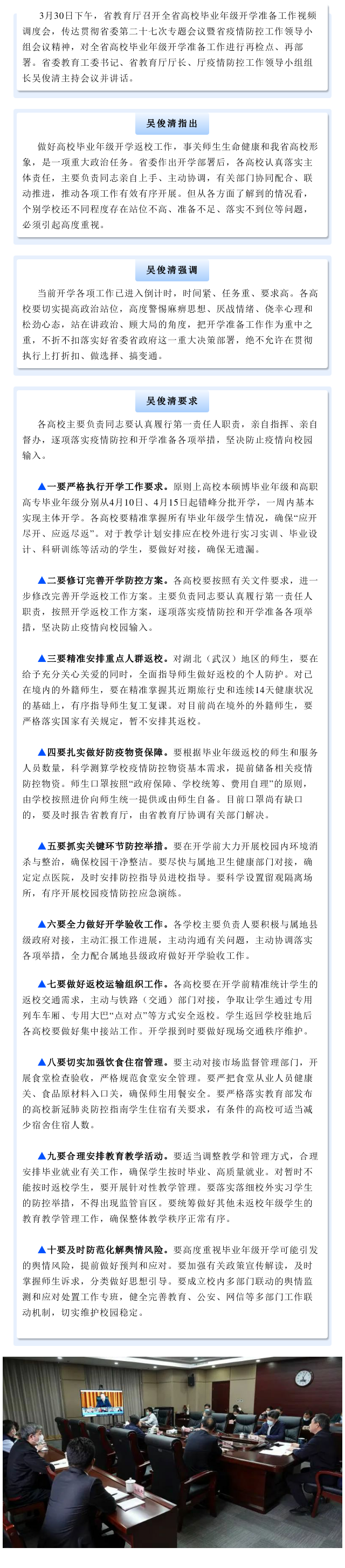 省教育厅召开全省高校毕业年级开学准备工作视频调度会
