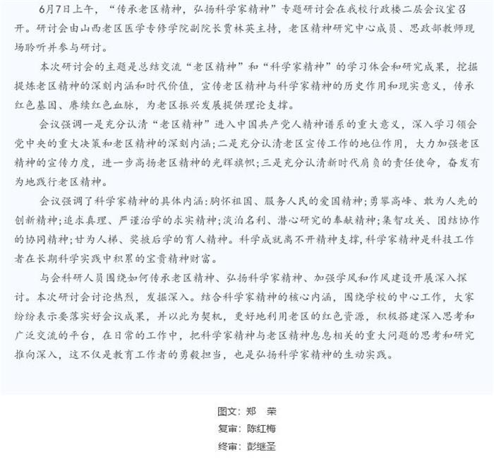 我校举办“传承老区精神,弘扬科学家精神”研讨会