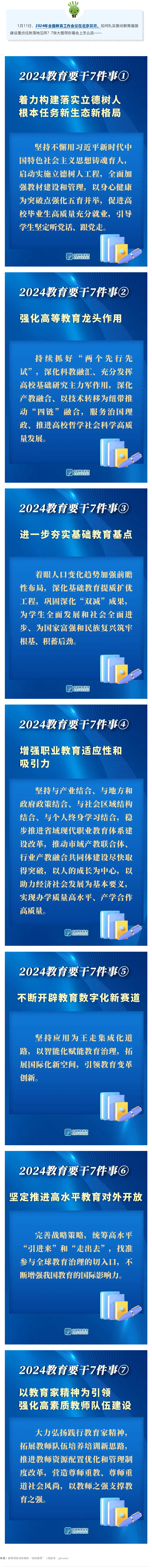 1月11日,2024年全国教育工作会议在北京召开。如何扎实推动教育强国建设重点任务落地见效?7张大图带你看会上怎么说——