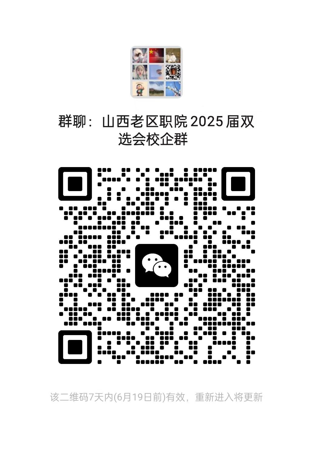 1.参会报名的企业扫描下方二维码进群(每个企业限制1人进群),学校审核通过后,会在本群公布参会企业的审核结果。