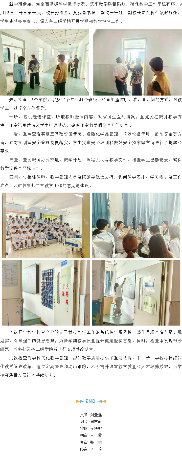 凝心聚力抓教学 精准检查促提升 ——我校开展新学期开学教学检查工作