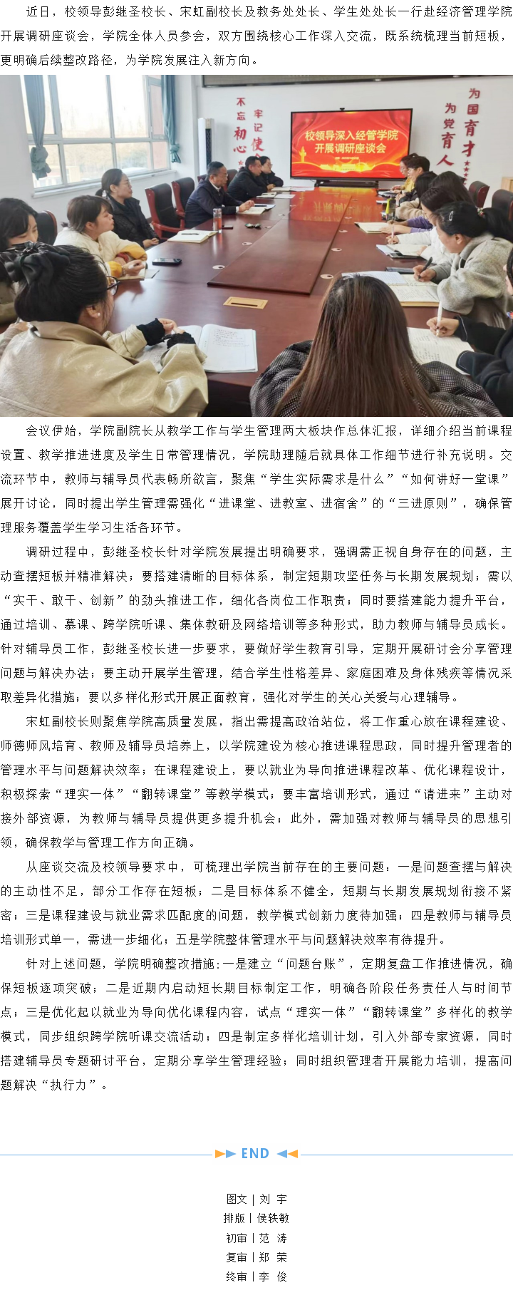 聚焦问题谋整改 缩小差距求发展——校领导赴经管学院开展调研座谈